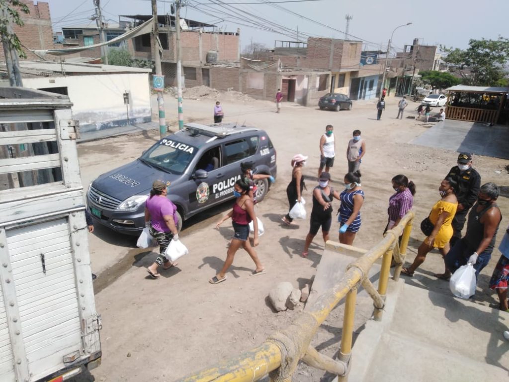 Lebensmittelpakete verteilen im Distrikt Villa María del Triunfo, Lima